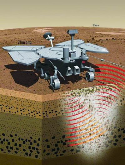 “祝融号”火星车在乌托邦平原进行巡视雷达勘测,揭示了该区域精细地下分层结构和物性信息。邓俊绘图