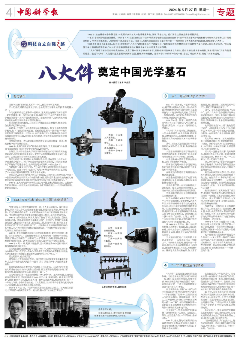 谈到“八大件”的研制,离不开一个人,他的名字叫王大珩。
