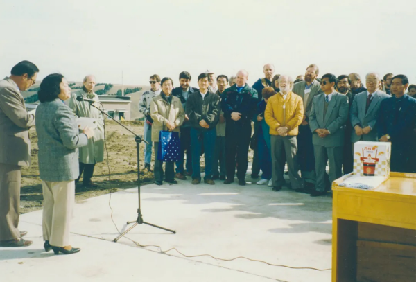 1994年,叶叔华(左二)参加乌鲁木齐25米射电望远镜揭幕仪式。