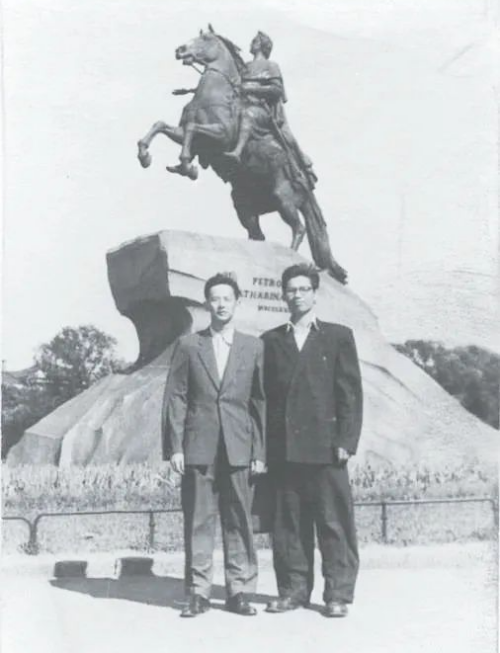 曾庆存(右)与同学在苏联留学。
