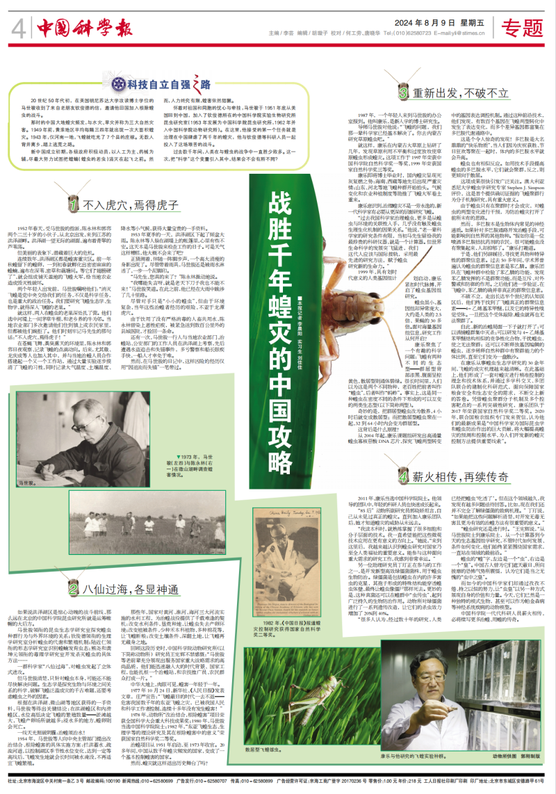 1982年,《中国日报》报道蝗灾控制研究获得国家自然凯发k8奖二等奖。